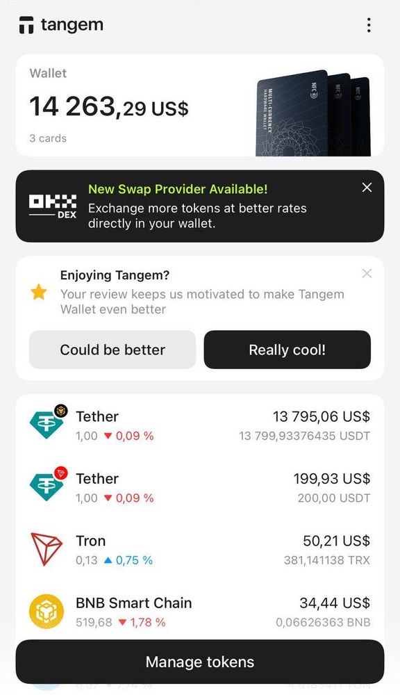 - Khi blockchain xác nhận giao dịch, số dư của bạn trong Tangem Wallet sẽ được cập nhật tự động.