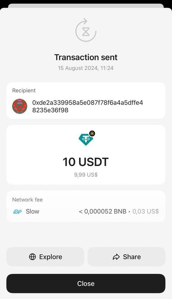 - Token sẽ được trừ khỏi ví gửi, và người nhận sẽ nhận được số tiền (có thể mất 1-30 phút tùy coin/token & mạng lưới)