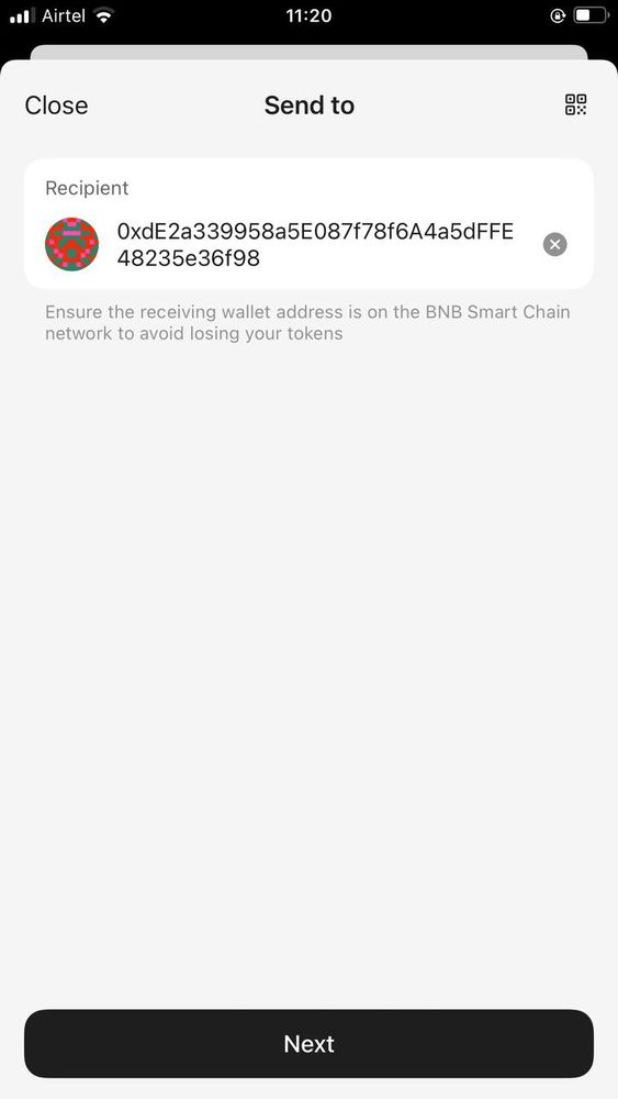 3. Dán địa chỉ ví người nhận. Kiểm tra thật kỹ trước khi gửi, tránh lỗi sao chép hoặc dán nhầm địa chỉ. Sau khi kiểm tra xong, chọn Next để tiếp tục.