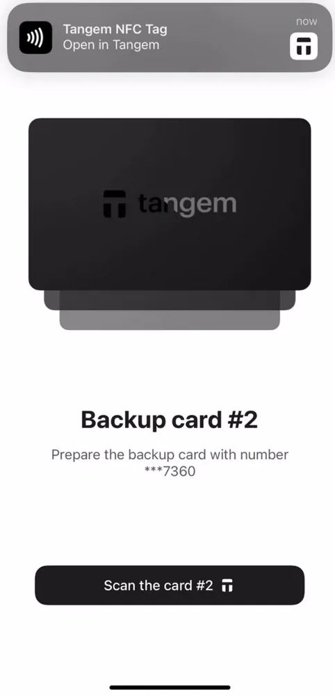 2. Quét thẻ Tangem thứ hai bằng điện thoại.