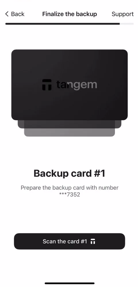 Bạn có thể sao lưu khóa ví sang các thẻ Tangem khác. Tốt nhất hãy dùng cả 2 hoặc 3 thẻ để tránh rủi ro sau này.