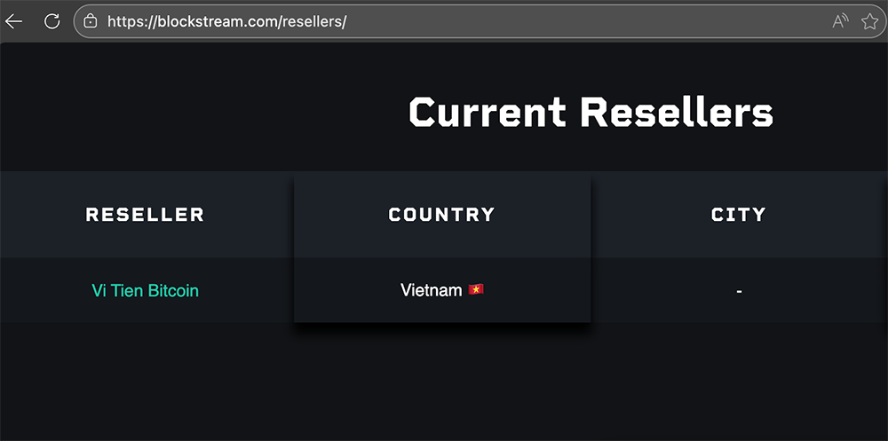 Ví Tiền Bitcoin là đại lý ủy quyền chính thức của Blockstream tại Việt Nam.